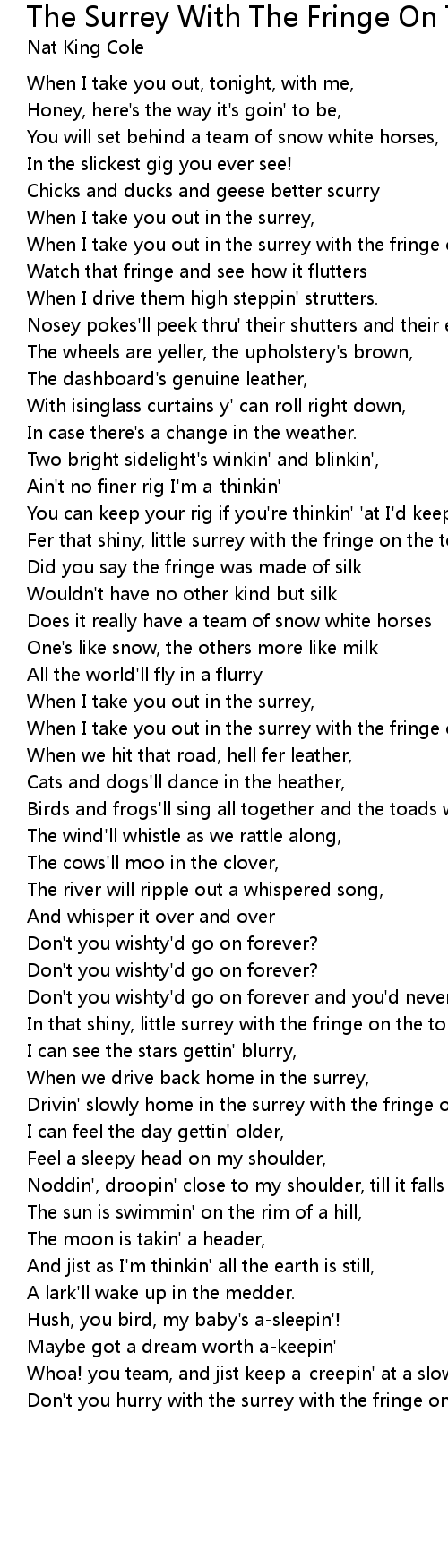 Don't you hurry with the surrey with the fringe on the top! |