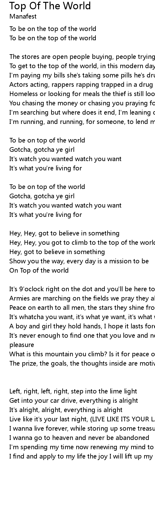 Hey, Hey, you got to climb to the top of the world, |