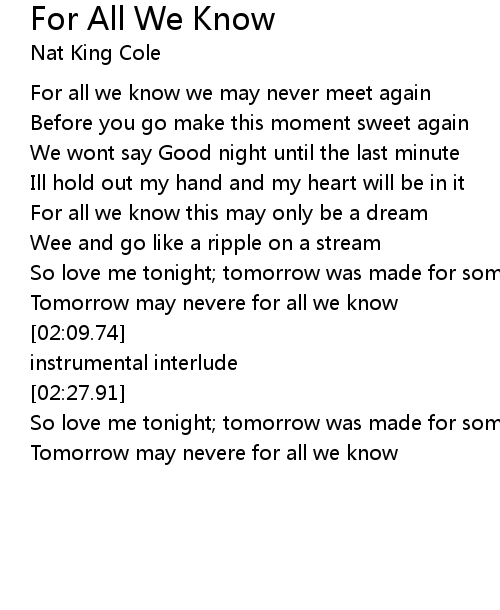 For All We Know Lyrics