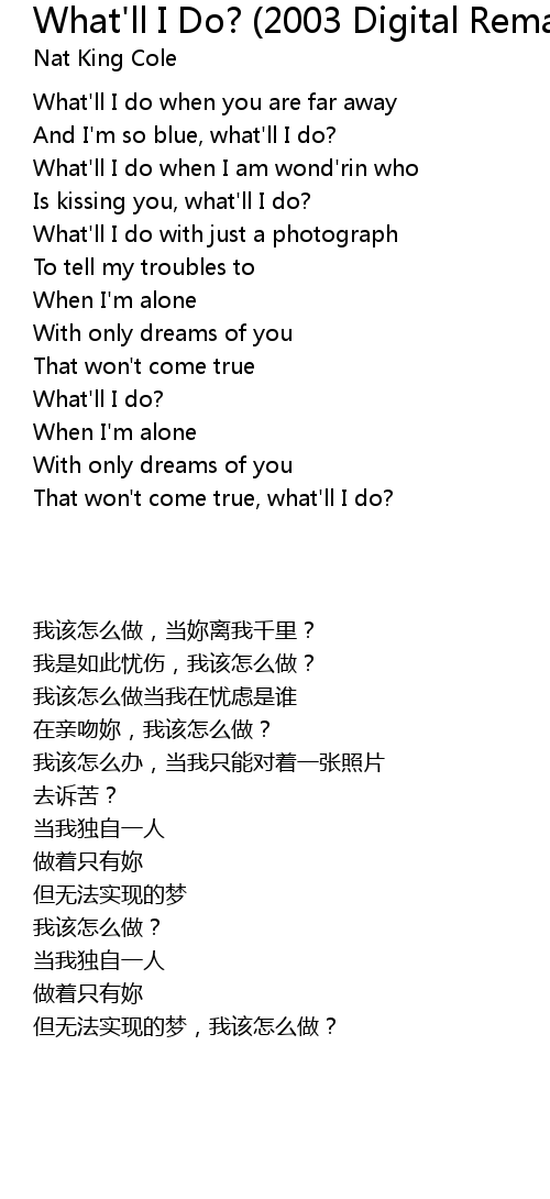 | [00:37.458] | What'll I do when I am wond'rin who |