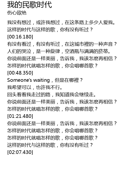 | [01:57.590] | zhe yang de shi dai yu zhe yang de ge, ni you mei you ting guo? |