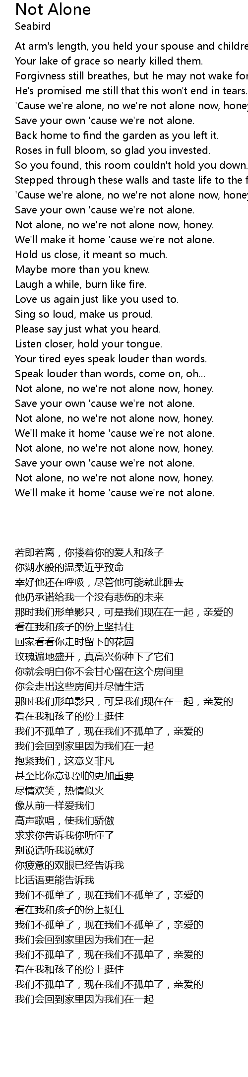 We'll make it home 'cause we're not alone. |