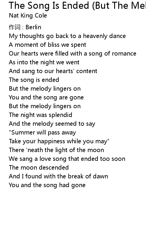 | Song | The Song Is Ended (But The Melody Lingers On) |