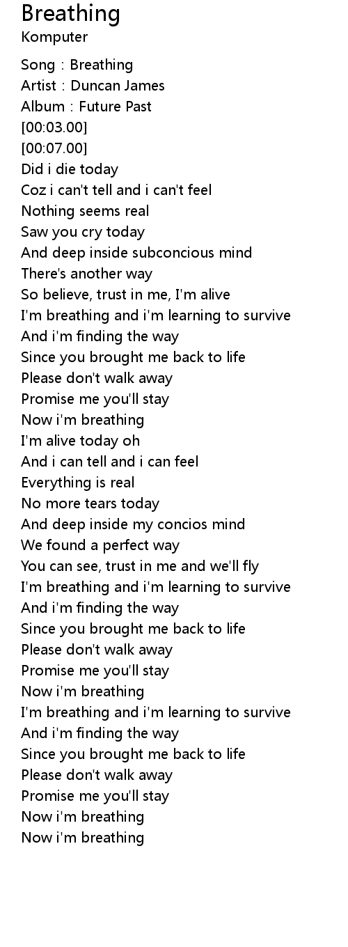 | [00:41.20] | I' m breathing and i' m learning to survive |