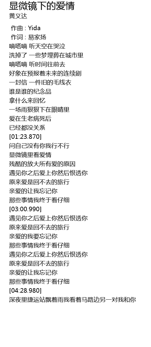 | [00:19.670] | 嘀嗒嘀 听天空在哭泣 |
