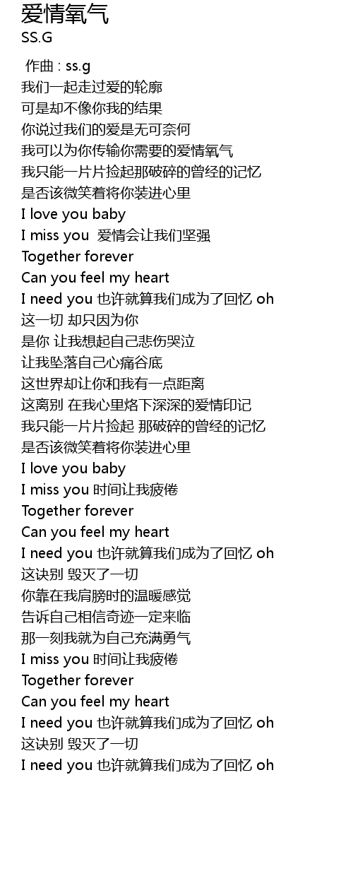 | [00:34.32] | 我可以为你传输你需要的爱情氧气 |