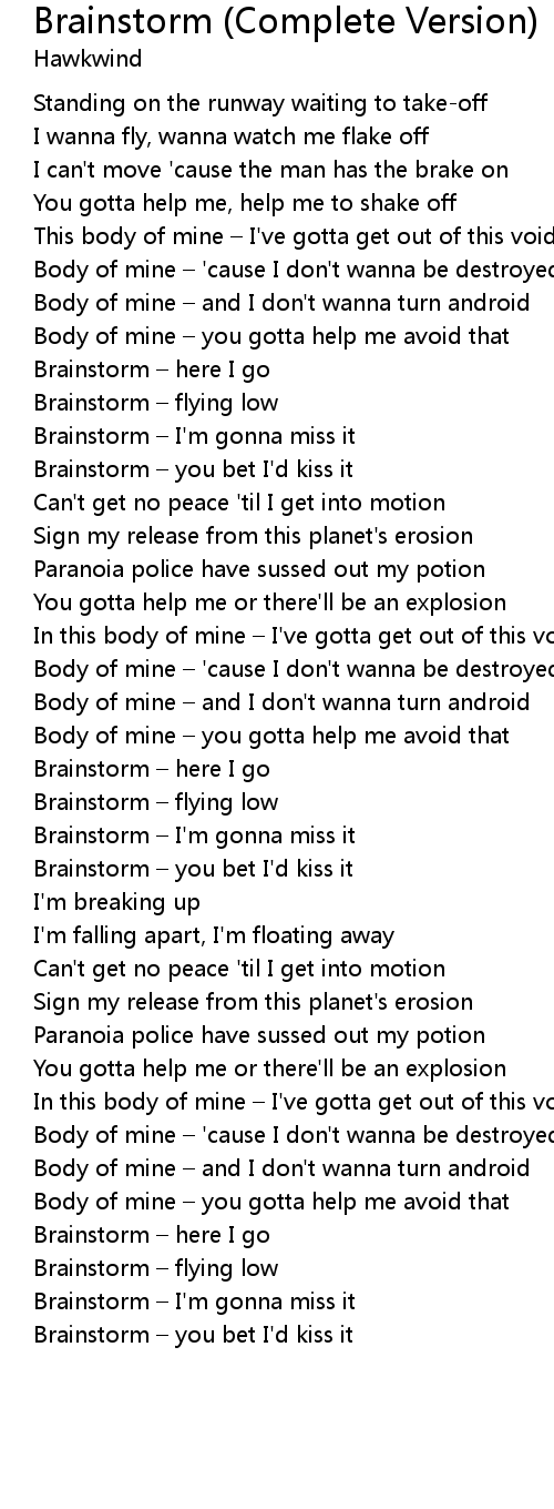 | [00:54.07] | Brainstorm – here I go |