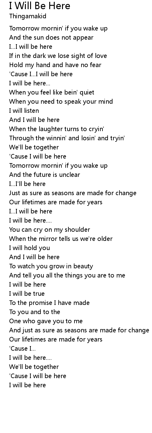 I Will Be Here Lyrics