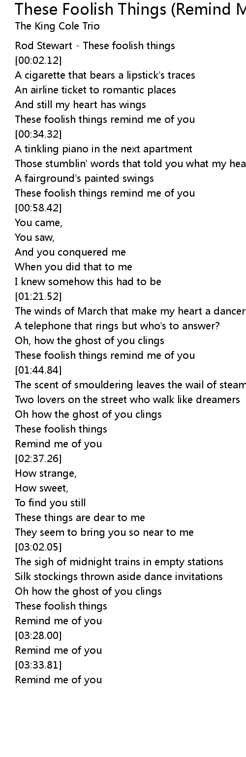 These Foolish Things (Remind Me Of You) (1992 Digital Remaster) Lyrics