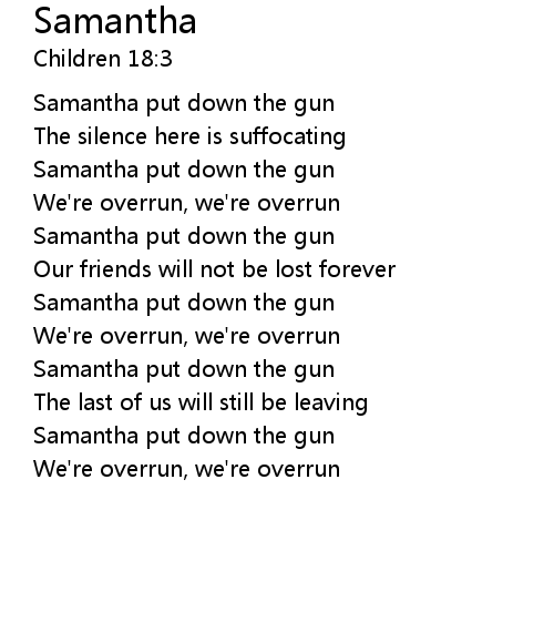 | Samantha put down the gun | |