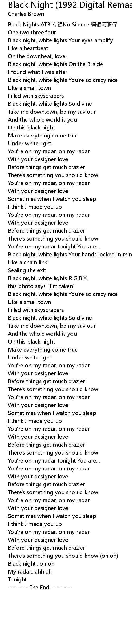 | Black night, white lights You' re so crazy nice | |