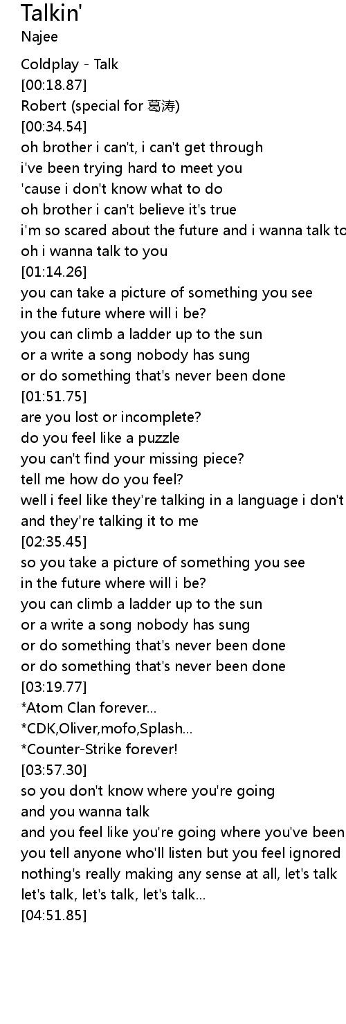 | [00:00.85] | Coldplay - Talk |