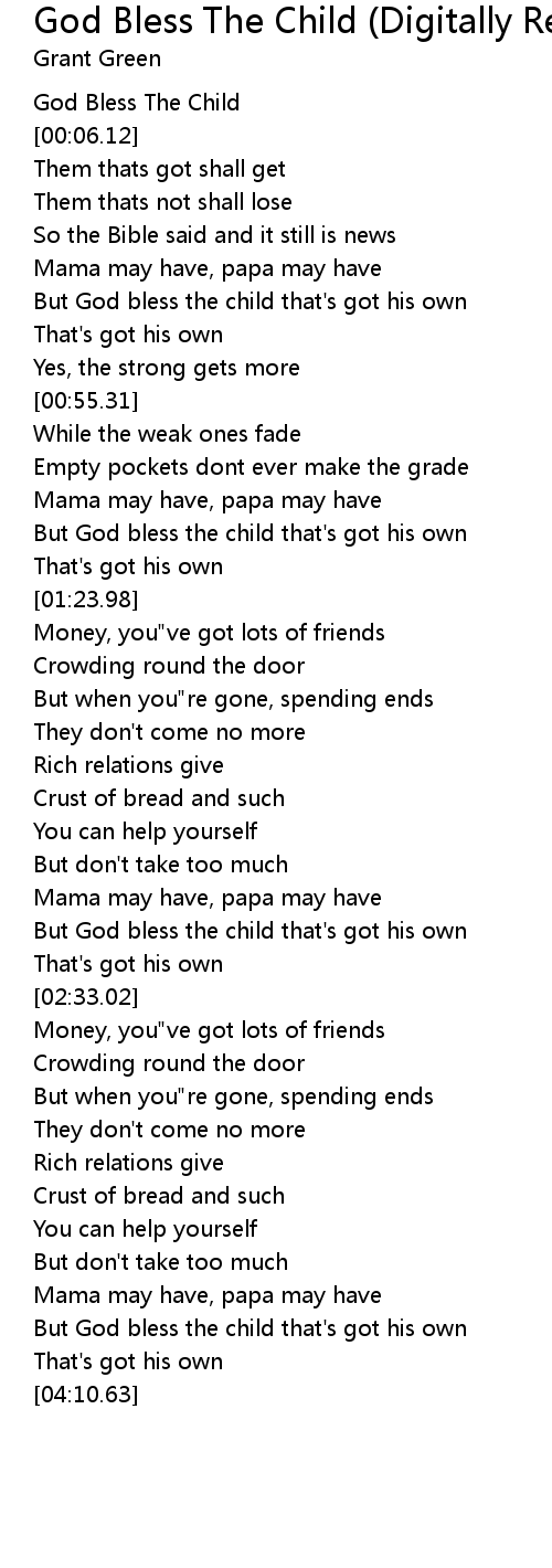 God Bless The Child (Digitally Remastered 05) Lyrics