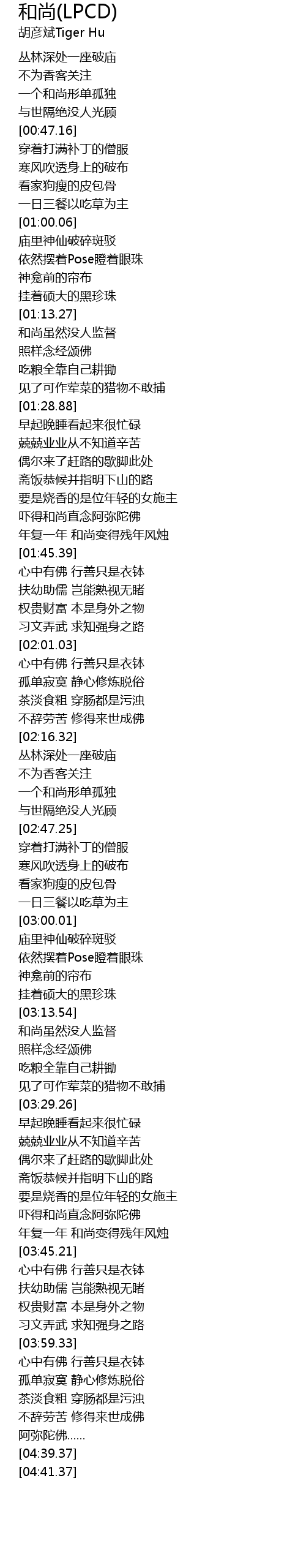 | [01:41.69] | 年复一年 和尚变得残年风烛 |