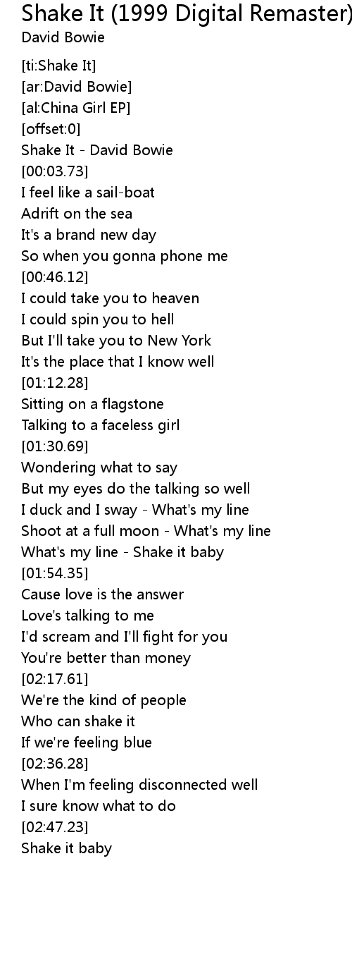 [00:01.44] Shake It - David Bowie