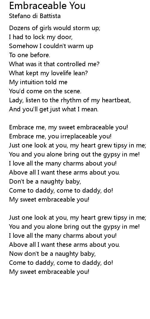 Embrace me, my sweet embraceable you! |