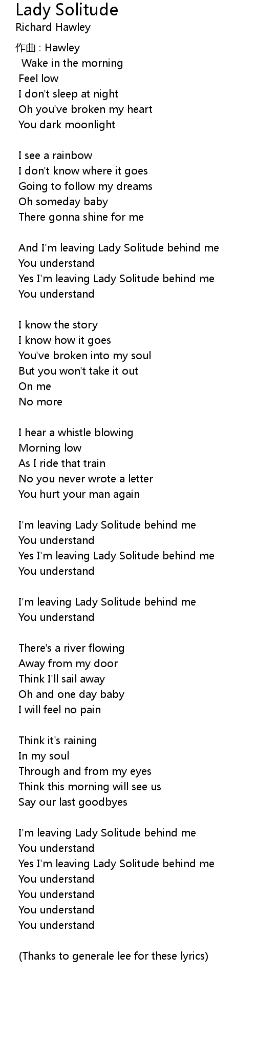 | Thanks to generale lee for these lyrics |