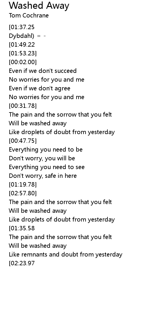 | [02:25.81][01:37.25][00:-1.00] | Morcheeba Washed Away Feat. Thomas Dybdahl |