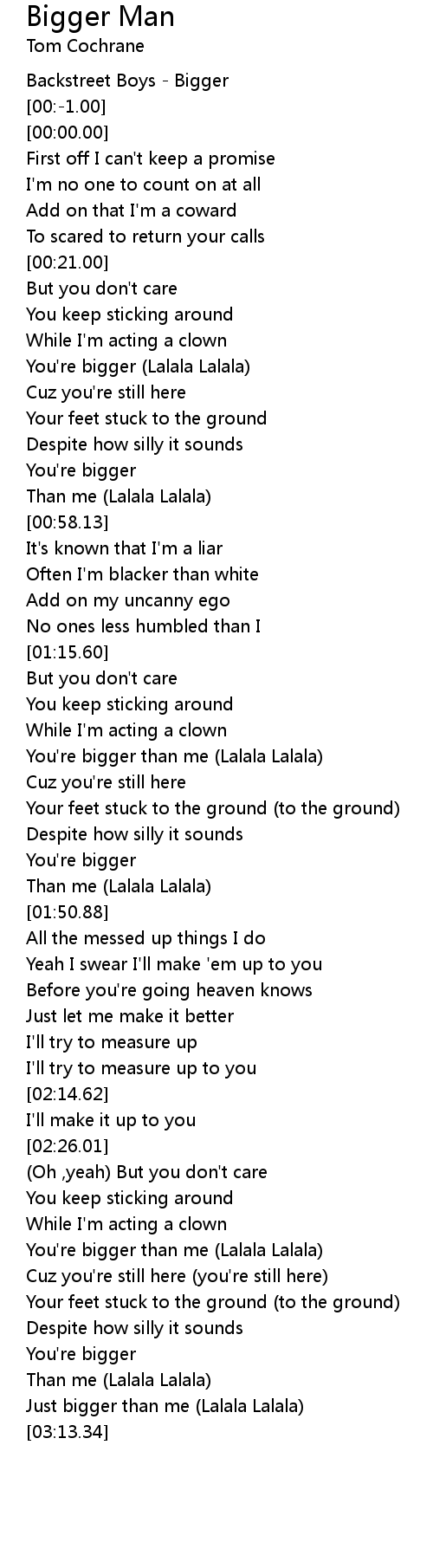 Just bigger than me (Lalala Lalala) |