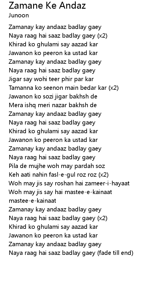 | Naya raag hai saaz badlay gaey (fade till end) |