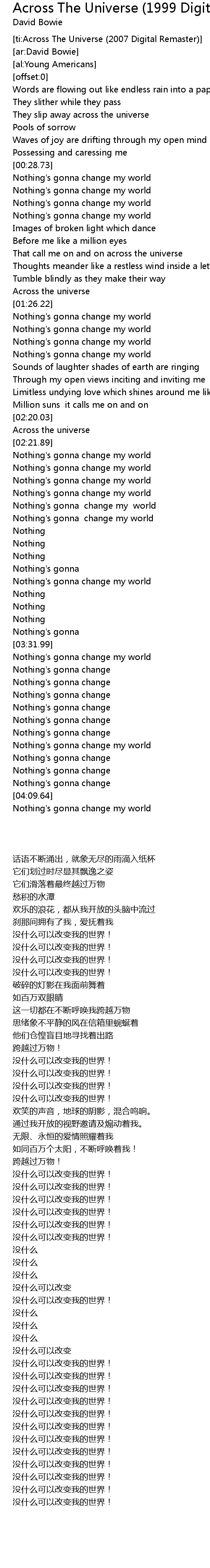 [ti:Across The Universe (2007 Digital Remaster)] |