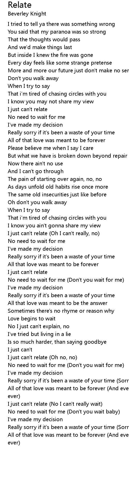 I just can't relate (Oh I can't really, no) |