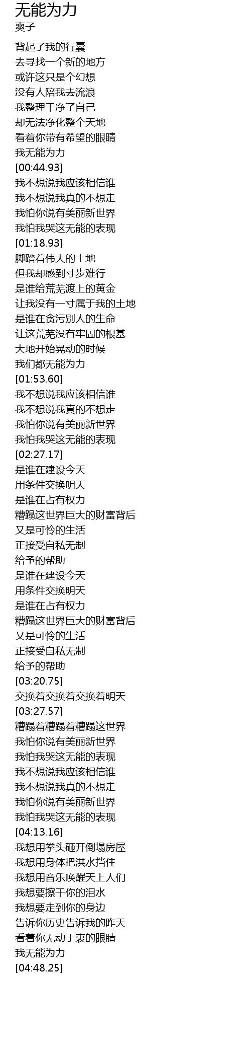 | [01:51.13] | wǒ men dōu wú néng wéi lì |