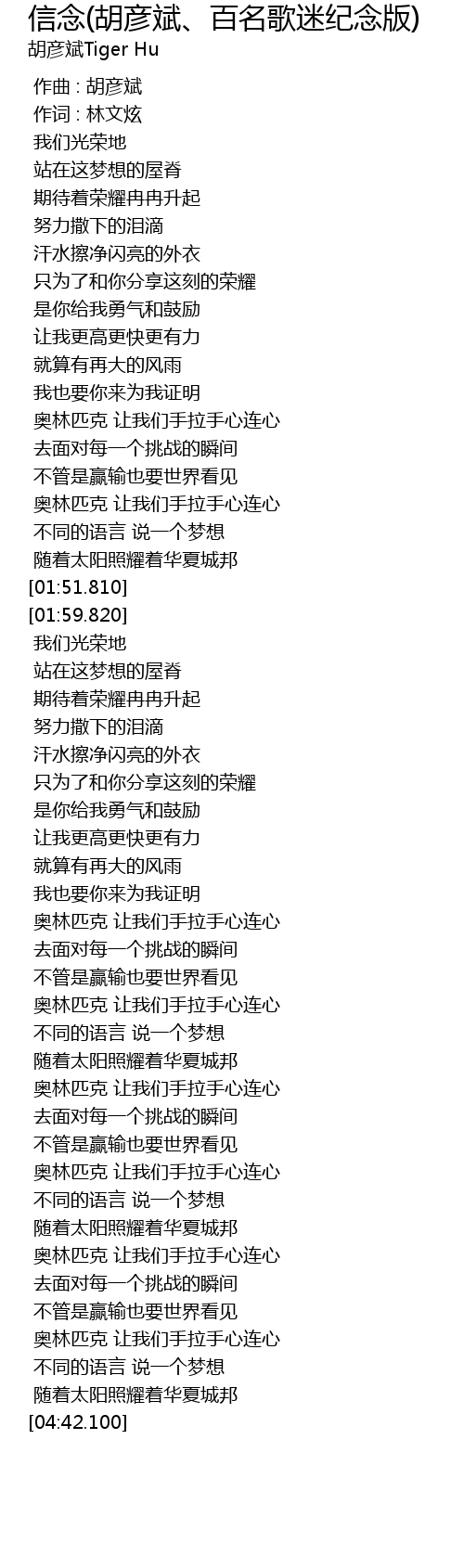 | [03:42.510] | 奥林匹克 让我们手拉手心连心 |