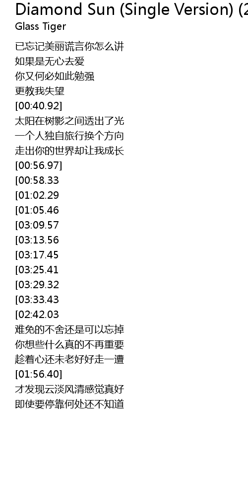 | [03:41.29][03:09.57][02:09.79][01:09.92] | Sunshine ba you shang diu zai yi bian |