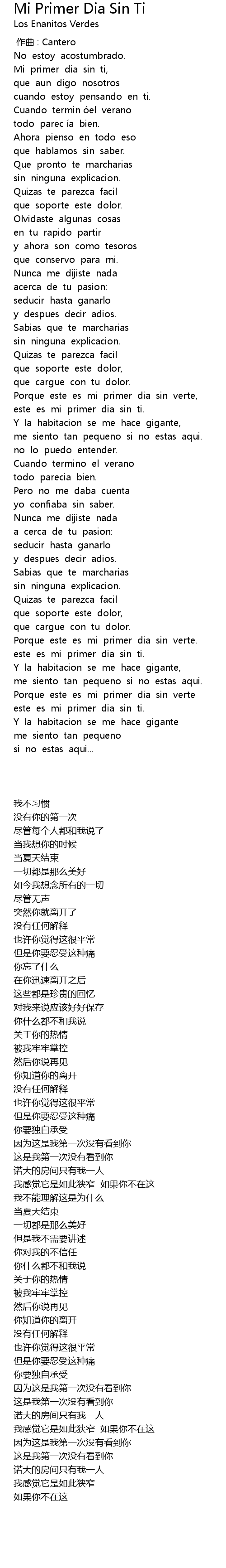 | [01:46.71] | este es mi primer dia sin ti. |