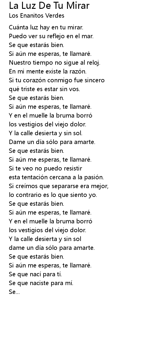 | Cuá nta luz hay en tu mirar. | |
