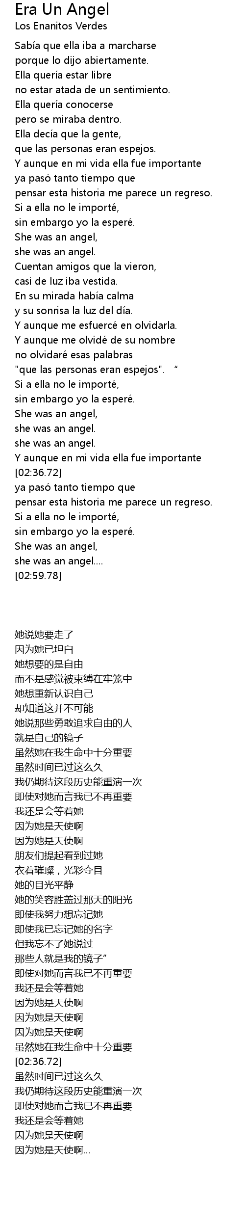 | [00:43.13] | Y aunque en mi vida ella fue importante |