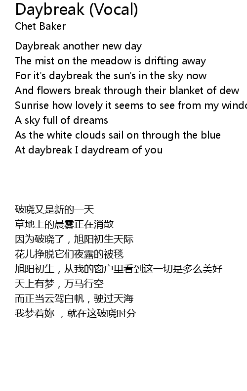 | [01:18.605] | For it's daybreak the sun's in the sky now |