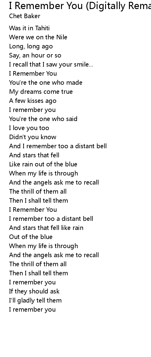 I Remember You (Digitally Remastered) Lyrics