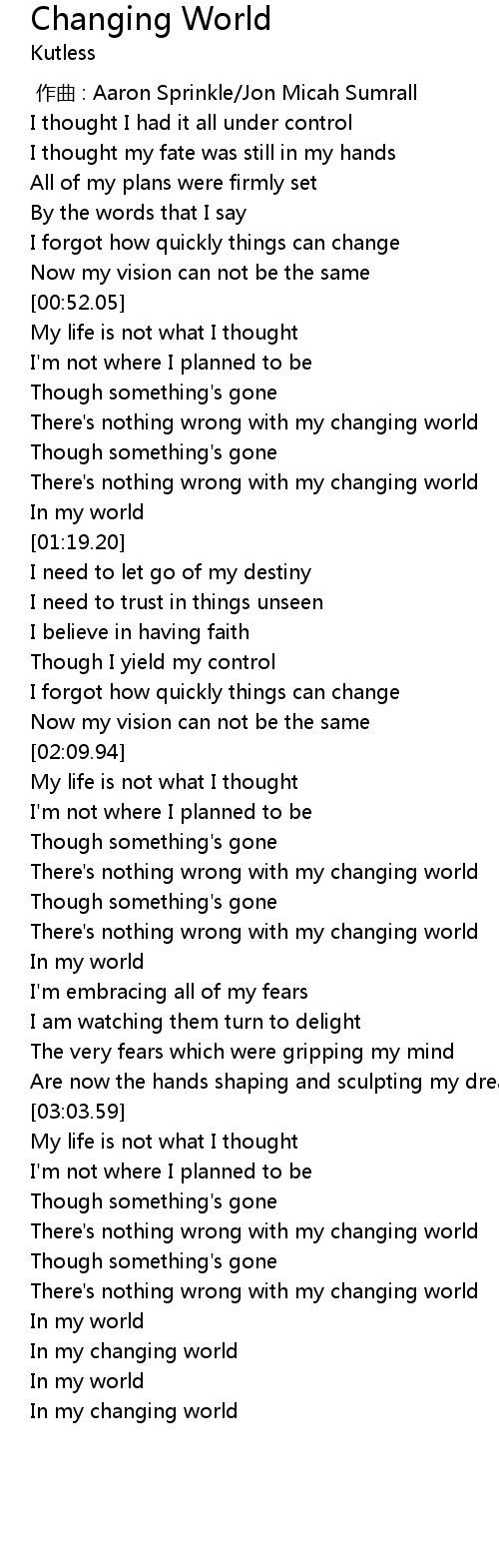 | [01:12.95] | There' s nothing wrong with my changing world |