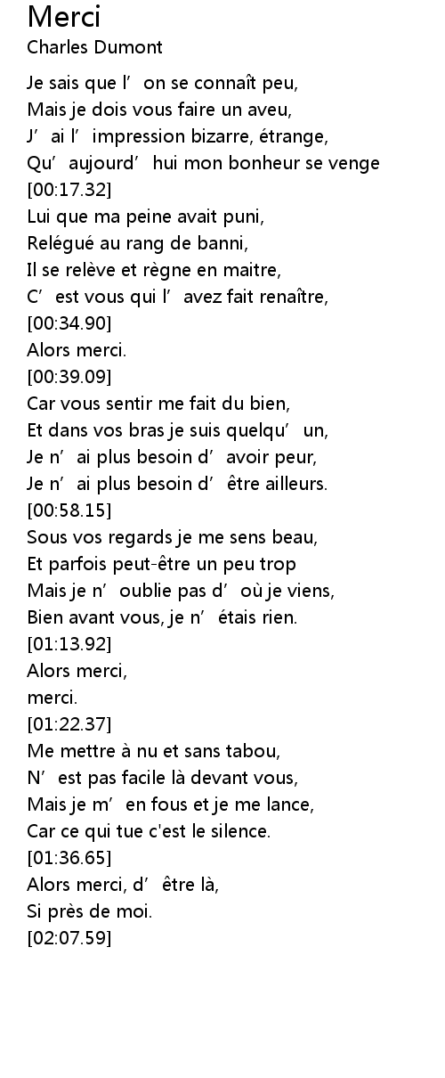 | [00:46.18] | Et dans vos bras je suis quelqu’un, |