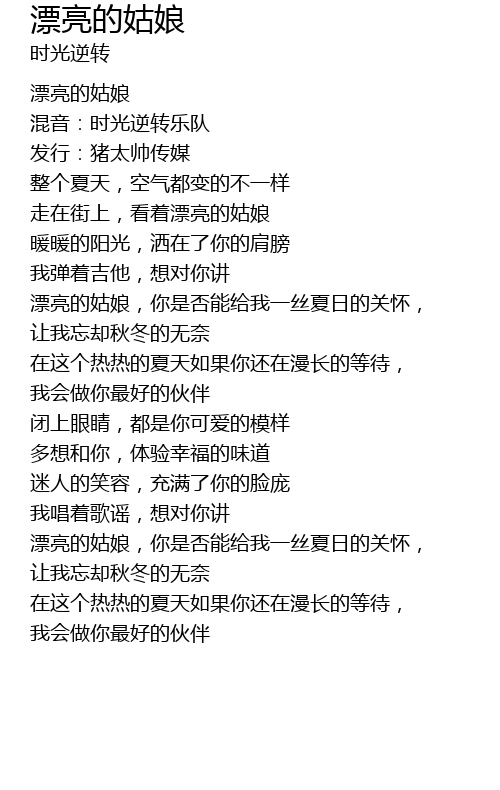 | piào liàng de gū niáng, nǐ shì fǒu néng gěi wǒ yī sī xià rì de guān huái, | |