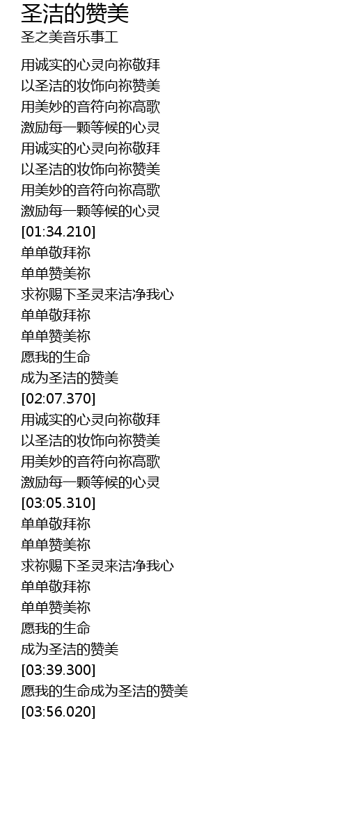 | [03:40.540] | 愿我的生命成为圣洁的赞美 |