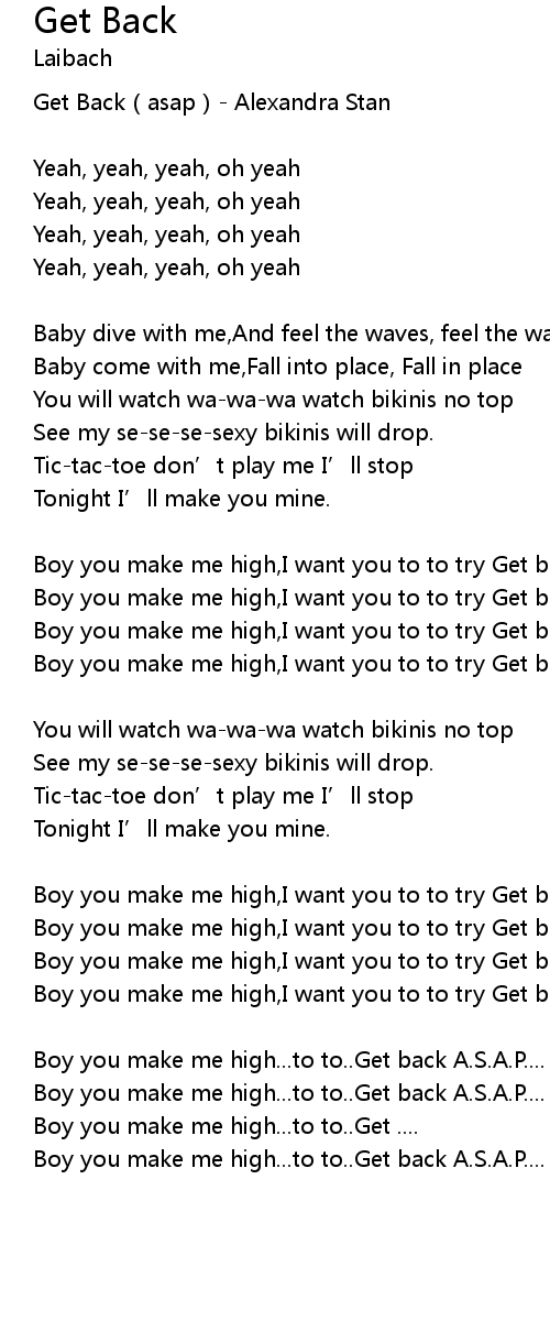 | Boy you make me high... to to.. Get back A. S. A. P.... |