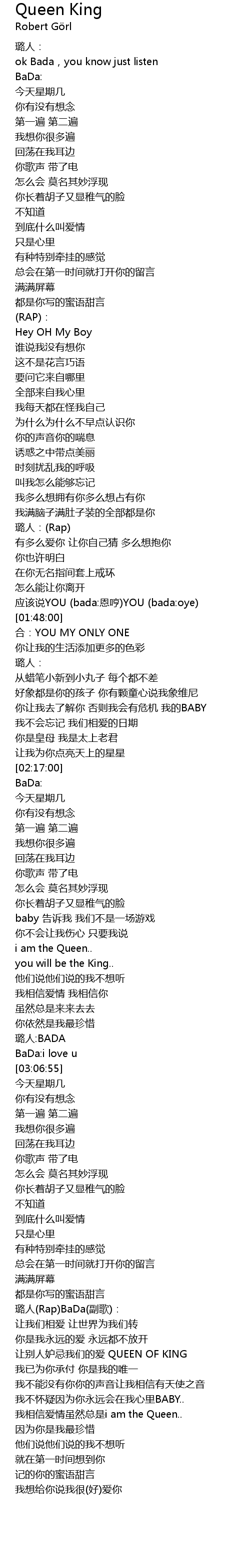 | [03:58.47] | 让别人妒忌我们的爱 QUEEN OF KING |