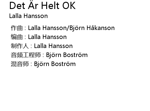 | [00:00.000] | 作曲 : Lalla Hansson/Björn Håkanson |