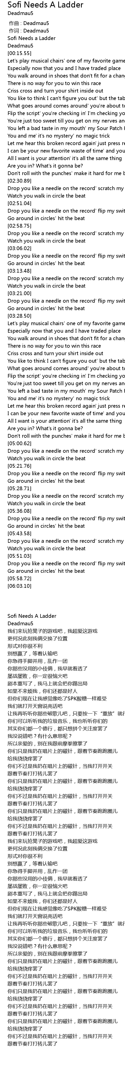 | [05:45.14] | Drop you like a needle on the record' scratch my itch |