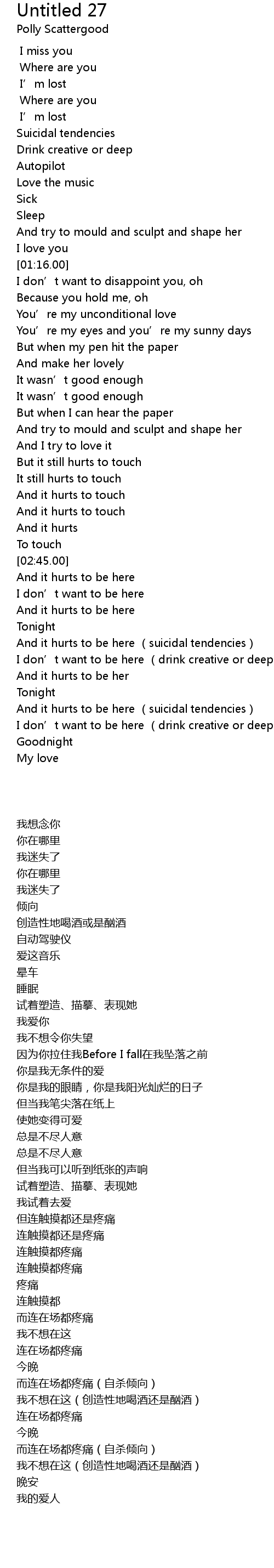 | [02:26.00] | But it still hurts to touch |