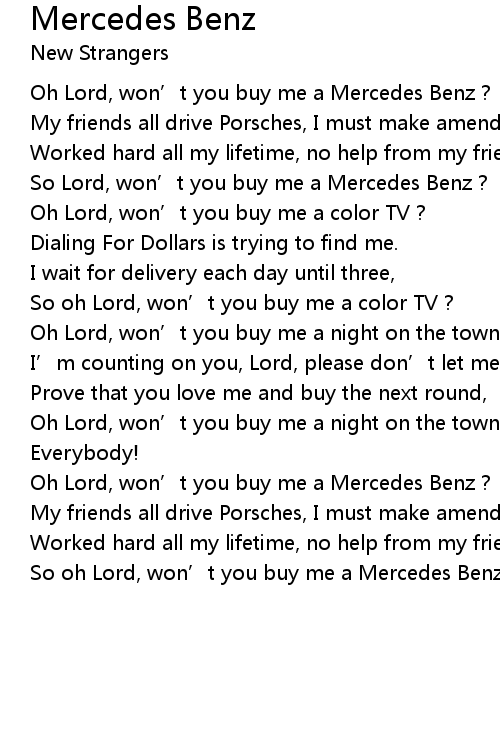 | [00:10.69] | Oh Lord, won’t you buy me a Mercedes Benz ? |