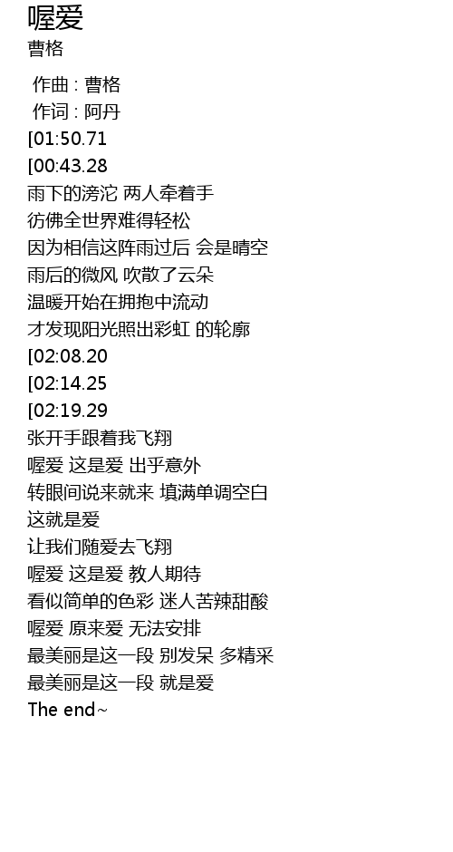 | [02:30.78] | 喔爱 这是爱 教人期待 |