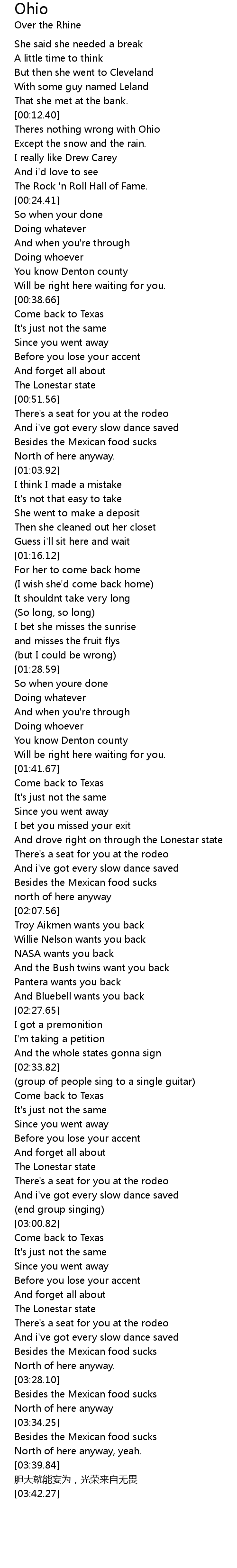 | [00:13.17] | Theres nothing wrong with Ohio |