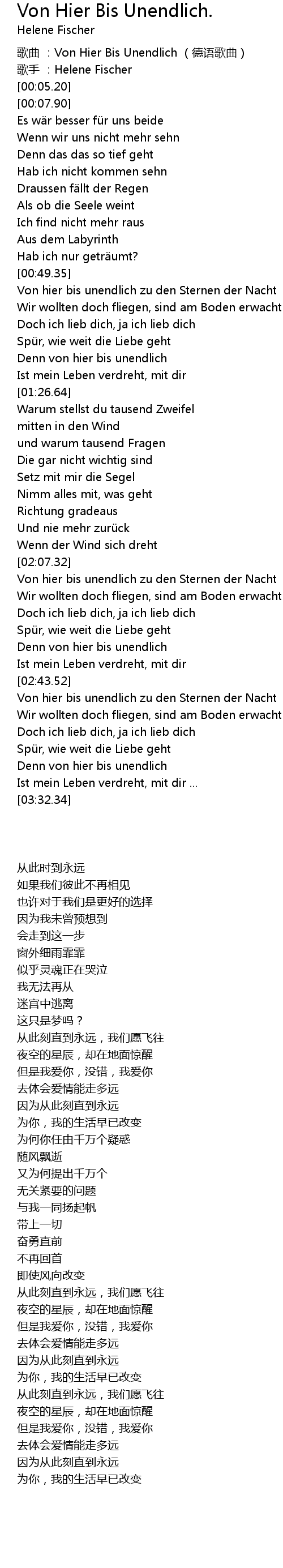 | [00:00.84] | 歌曲 :Von Hier Bis Unendlich (德语歌曲) |