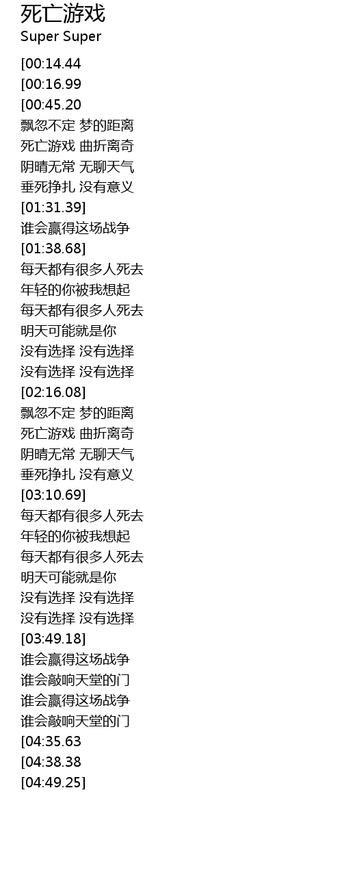 | [00:59.33] | 死亡游戏 曲折离奇 |
