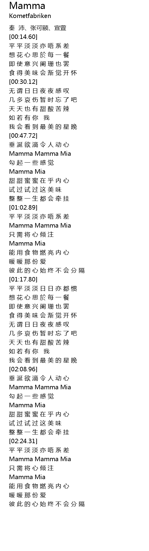 | [00:50.92] | Mamma Mamma Mia |