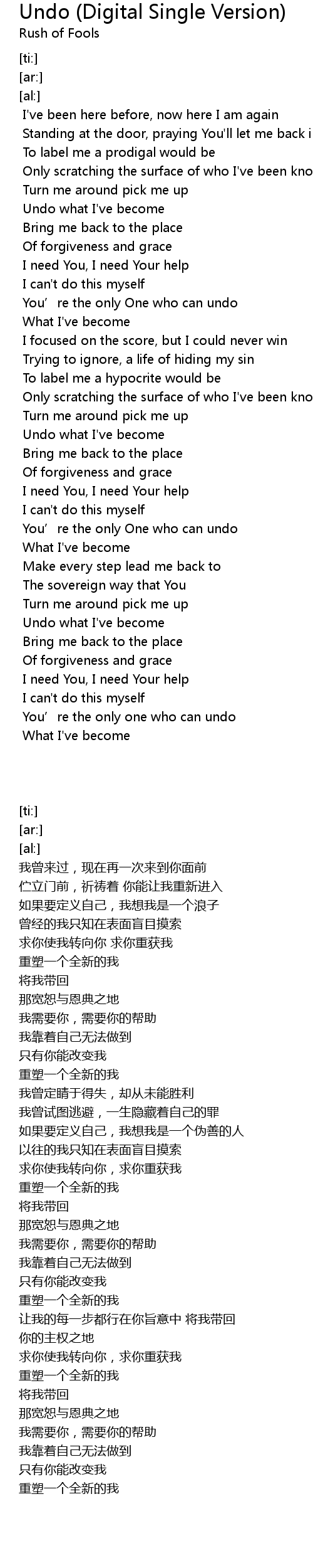 | [02:22.04] | You' re the only One who can undo |